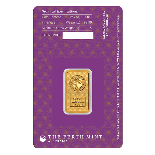 Produced by the historic Perth Mint, these gold bars are meticulously crafted to meet the highest quality and purity standards, often at .9999 fine gold. Solely owned by the Government of Western Australia, Perth Mint's gold bars are protected by a guarantee enshrined in Australia's Gold Corporation Act 1987. The Perth Mint is also a multi-accredited gold and silver refiner and assayer with endorsements by five of the world's leading commodity exchanges.
