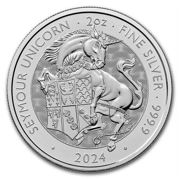 The Royal Mint Silver Tudor Beasts coins are a striking tribute to Britain's national animal mascots. Featuring the iconic Unicorn, the Silver Seymour Unicorn coin is loved by investors and collectors alike for its fine silver content and stunning designs. Silver Tudor Beast coins minted by the Royal Mint offer an unrivaled combination of purity and beauty, making them one of the most interesting coins to own in your Precious Metal portfolio.
